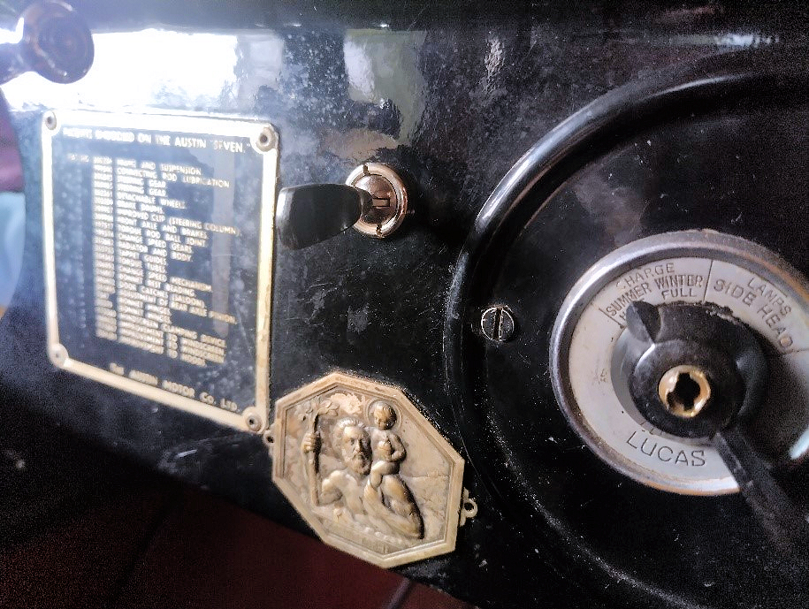 Conclusions were that a simple black face mounted bakelite lever switch was best suited to the Austin as you did not need to drill a big hole and if you used a clockwork type you might make another turn in the other direction while it was still going ! Willie McKenzie is putting them into stock.